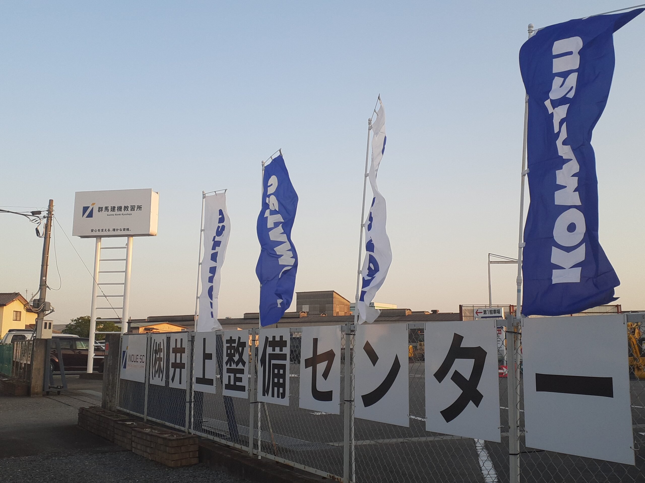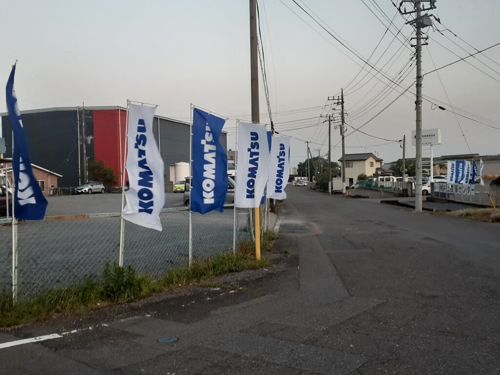 ご来場の目安として当社入り口と道路沿いにKOMATSUのフラッグをたてました